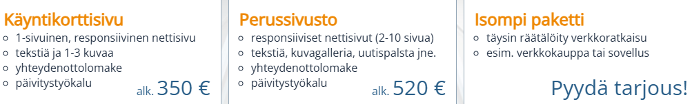 • Ilmainen ulkoasupäivitys nettisivuihin joka 2. vuosi